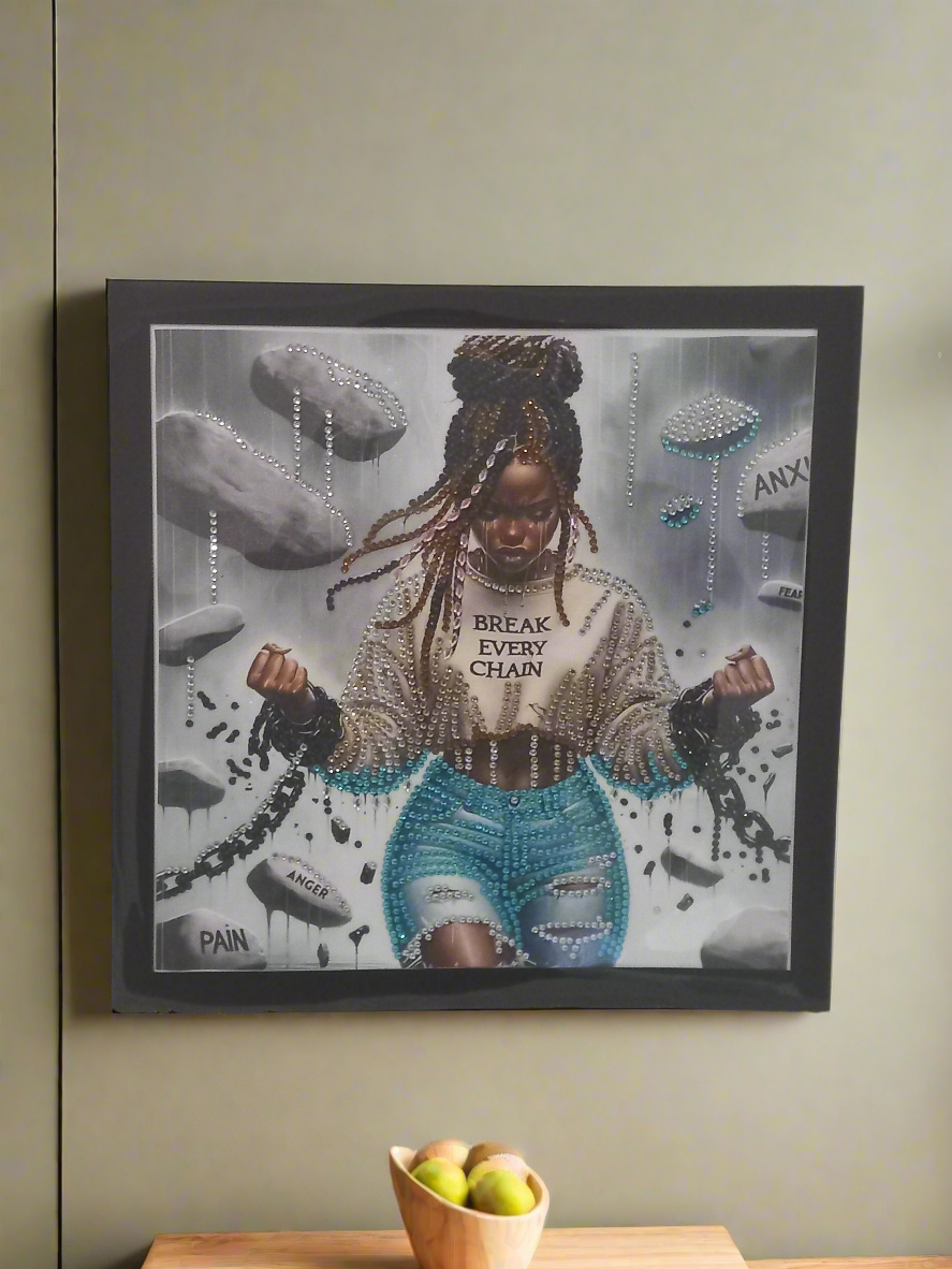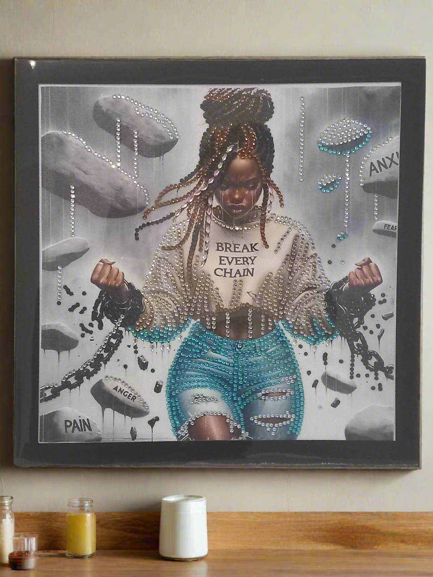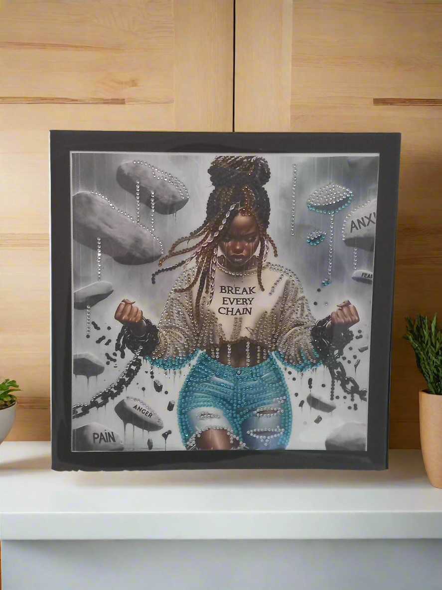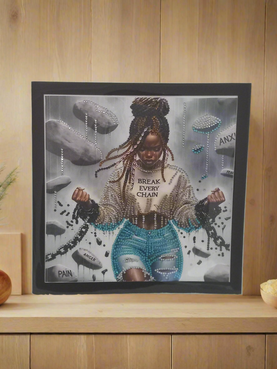 2pcs Pre-Made Diamond Art 'Break Every Chain' Picture & Frame Set