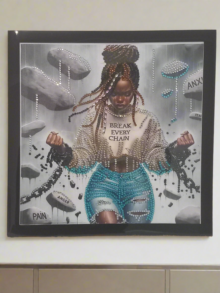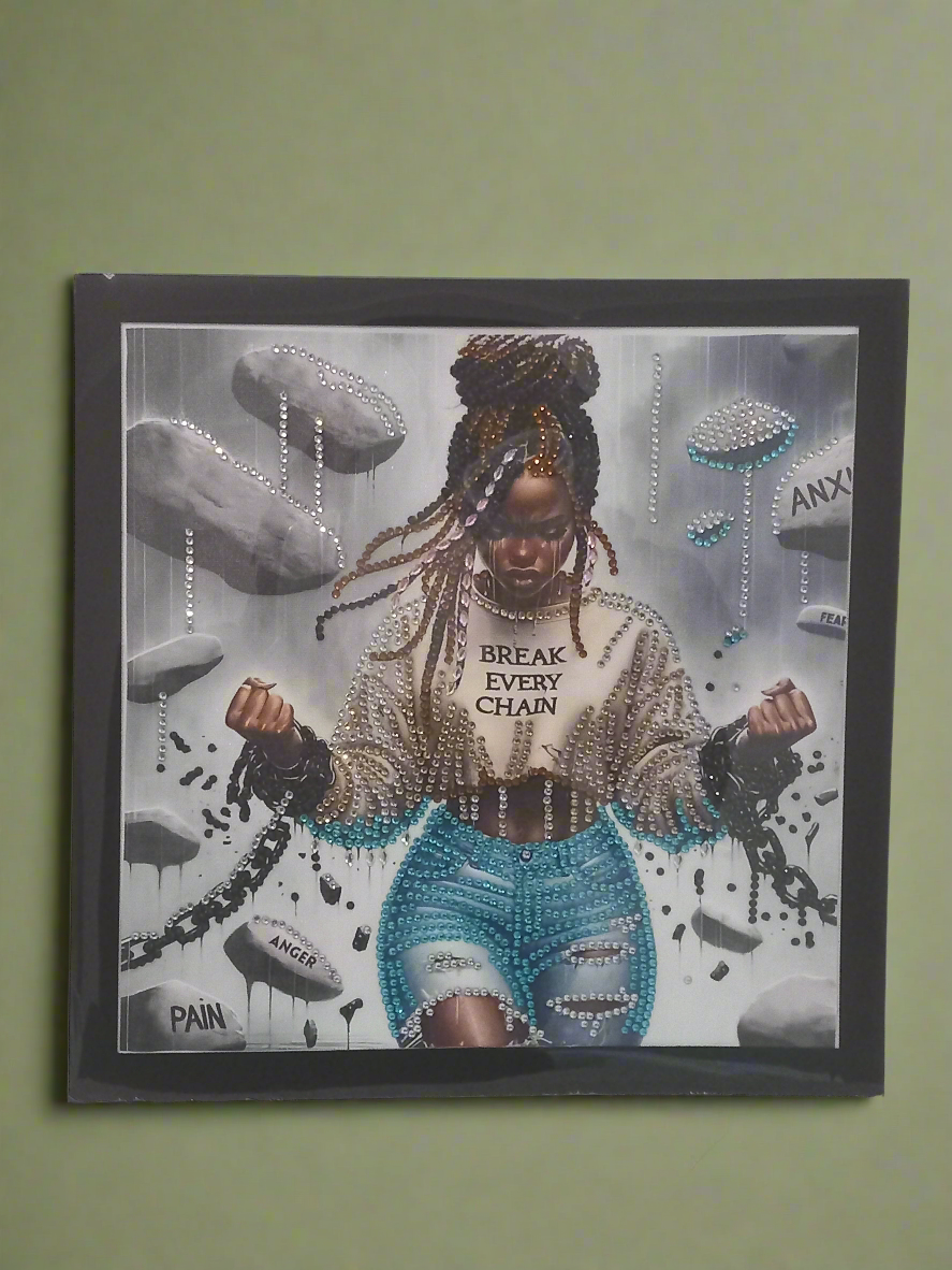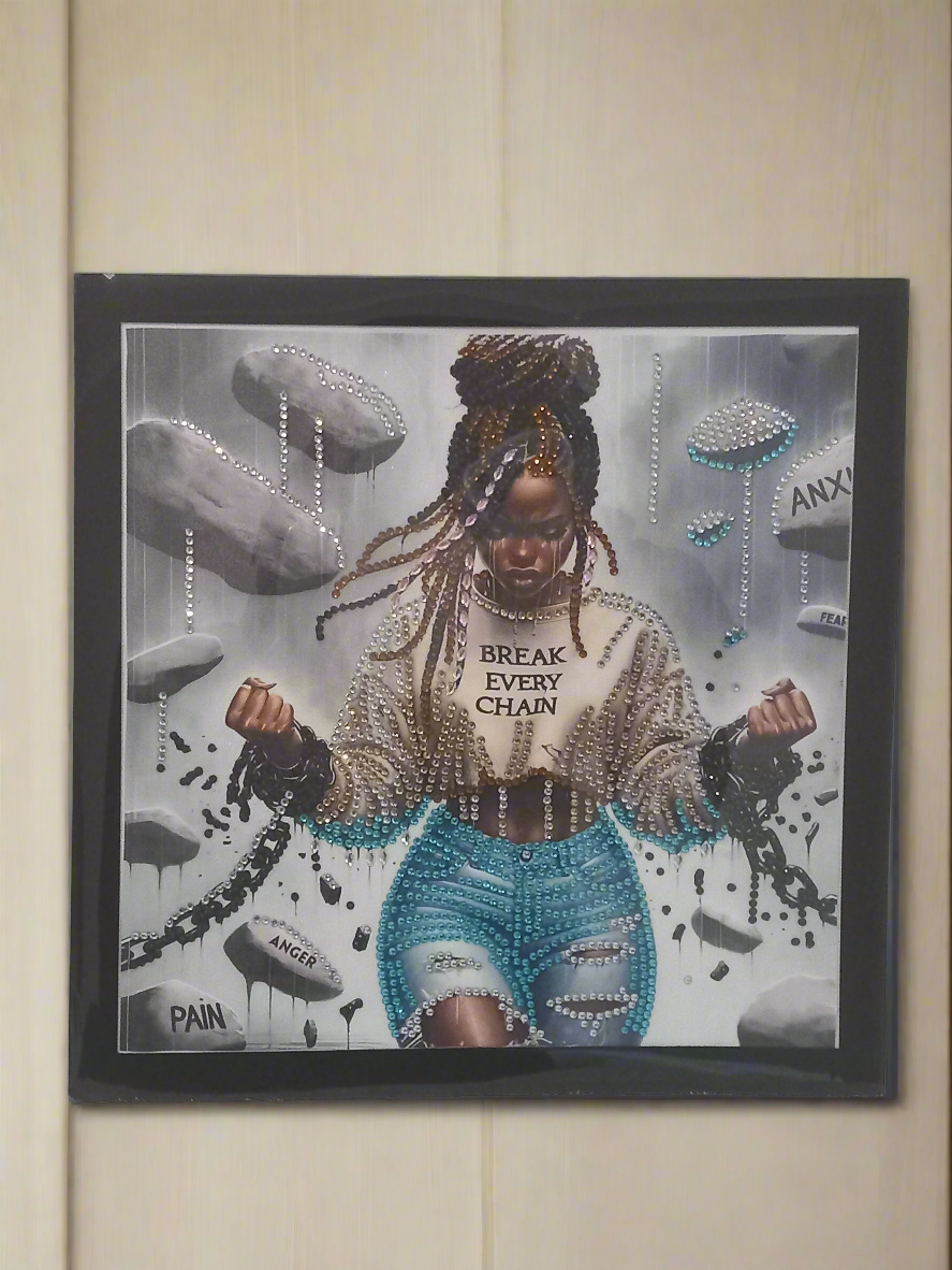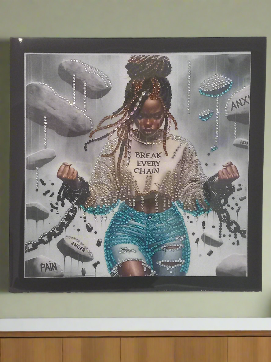 2pcs Pre-Made Diamond Art 'Break Every Chain' Picture & Frame Set
